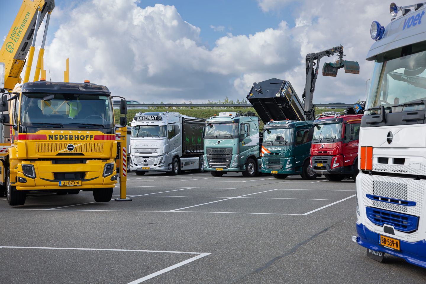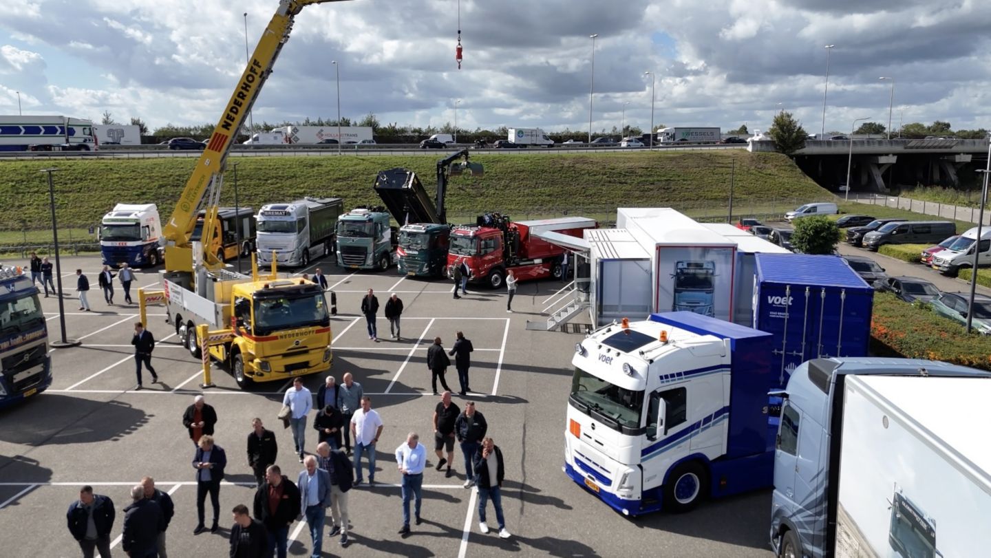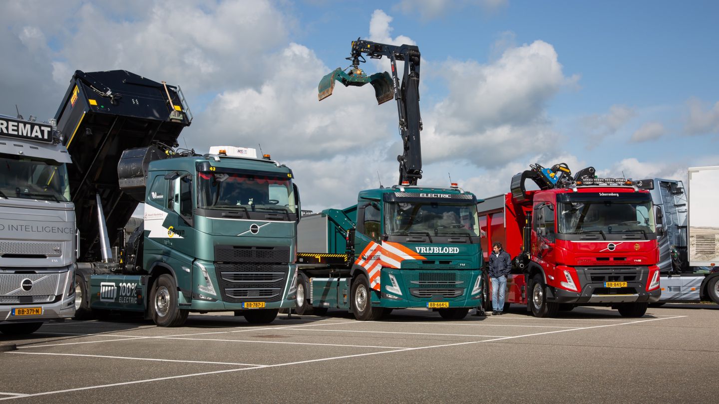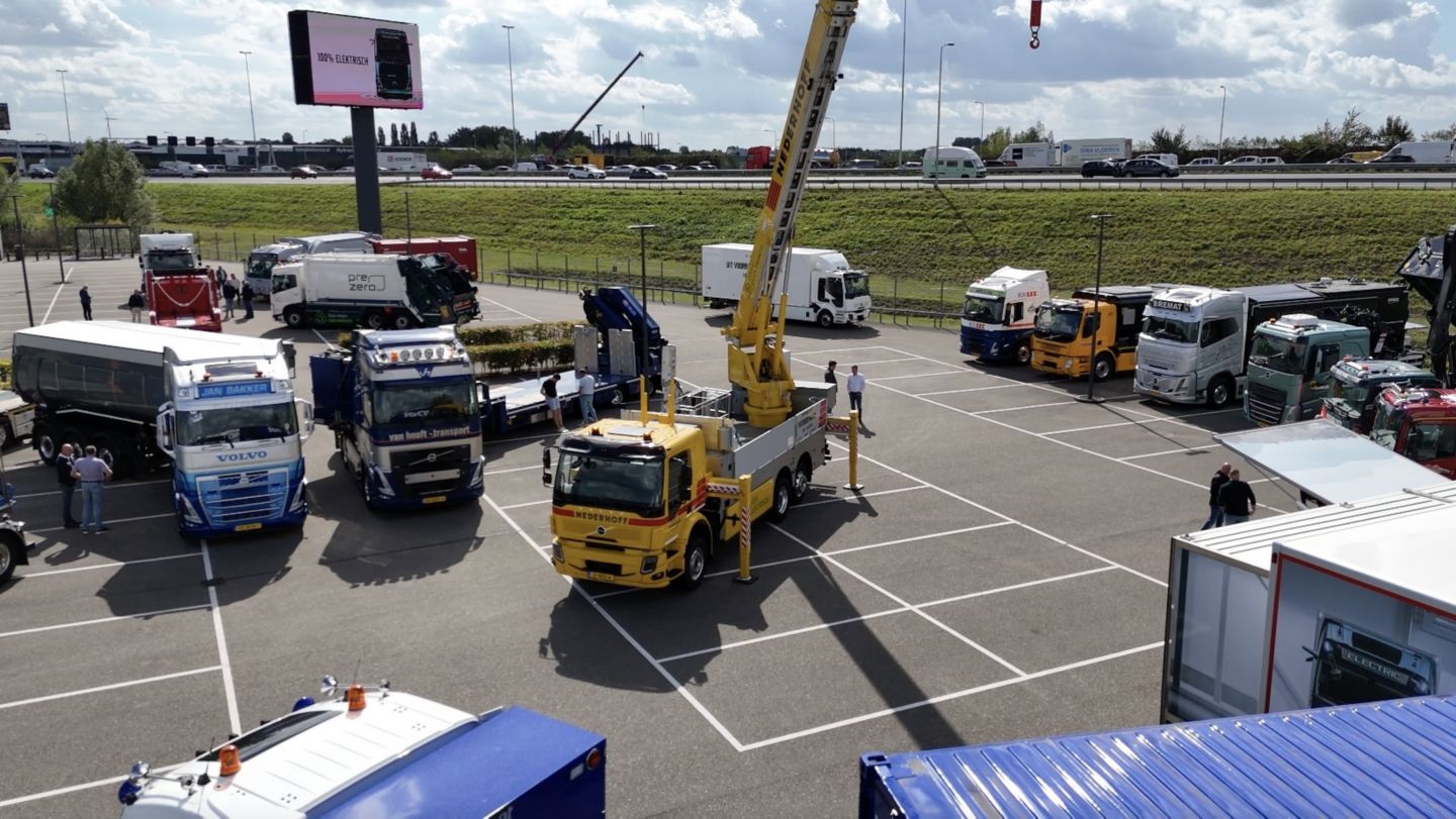 Verspreid over twee dagen kwamen meer dan 300 geïnteresseerden samen in Beesd, waar 26 elektrische Volvo-vrachtwagens uit de dagelijkse praktijk stonden opgesteld - elk met een unieke opbouw en configuratie. Het was waarschijnlijk een wereldprimeur om zoveel elektrische vrachtwagens van klanten op één locatie te zien. Via interactieve kennissessies werden praktische inzichten in de kansen én uitdagingen van elektromobiliteit gedeeld. Verschillende klanten deelden hun ervaringen uit de praktijk met hun elektrische Volvo-trucks.