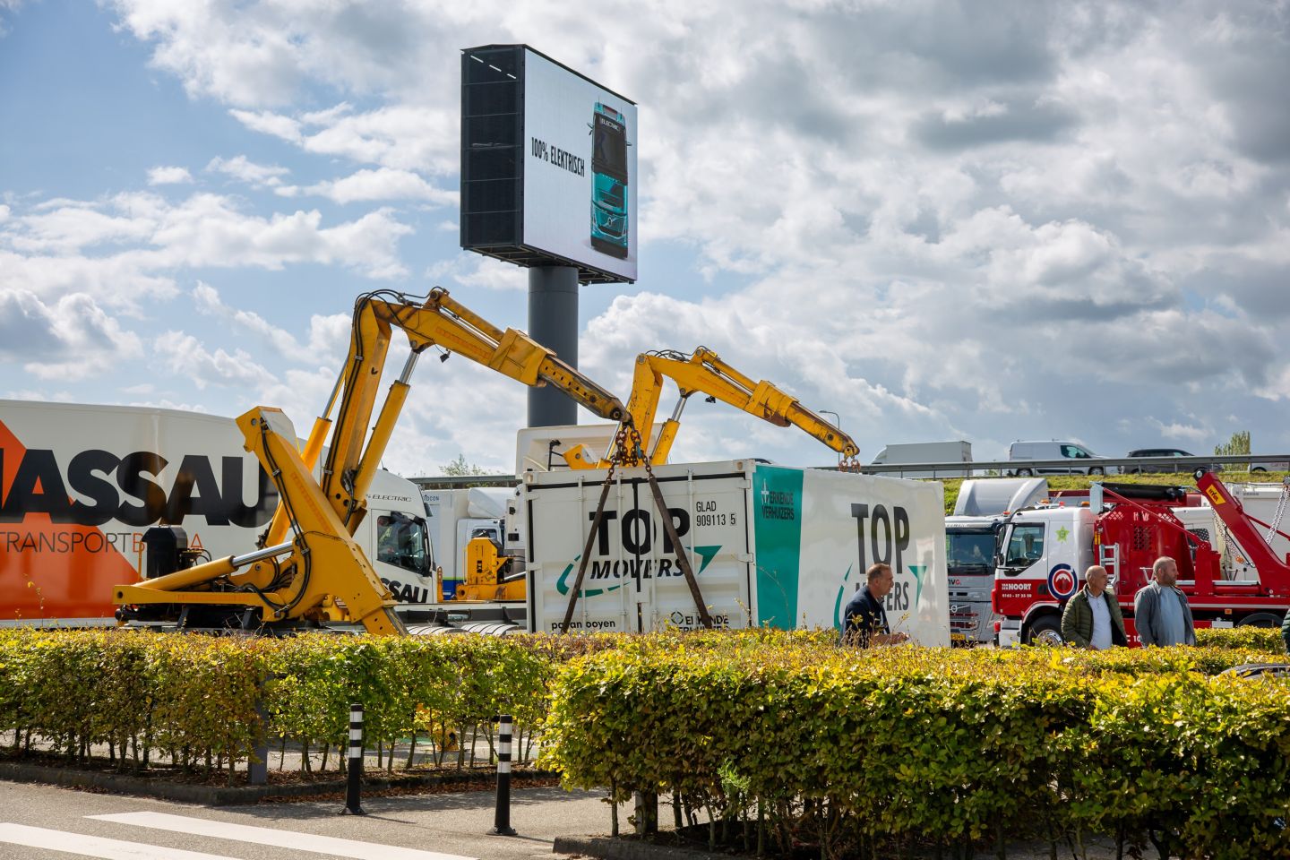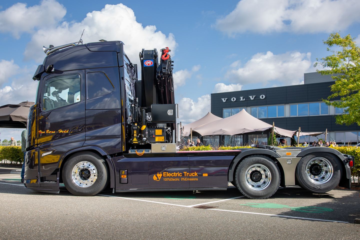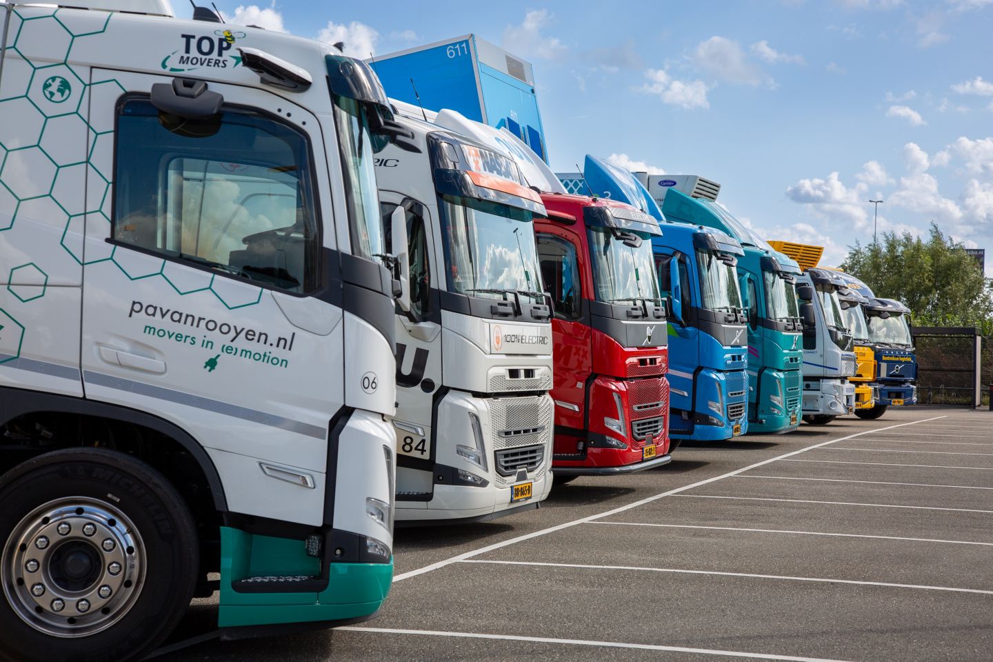 Verspreid over twee dagen kwamen meer dan 300 geïnteresseerden samen in Beesd, waar 26 elektrische Volvo-vrachtwagens uit de dagelijkse praktijk stonden opgesteld - elk met een unieke opbouw en configuratie. Het was waarschijnlijk een wereldprimeur om zoveel elektrische vrachtwagens van klanten op één locatie te zien. Via interactieve kennissessies werden praktische inzichten in de kansen én uitdagingen van elektromobiliteit gedeeld. Verschillende klanten deelden hun ervaringen uit de praktijk met hun elektrische Volvo-trucks.