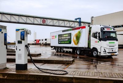 Naast vijf Volvo-dieseltrucks heeft Vogelaar Vredehof inmiddels ook twee Volvo FH Electric-trekkers in gebruik. De inzet van elektrische trucks sluit aan bij de bredere duurzaamheidsinitiatieven die Vogelaar Vredehof samen met Albert Heijn ontwikkelt. Denk bijvoorbeeld aan de teelt van de SPRANK-appel - een exclusief voor Albert Heijn ontwikkeld Nederlands ras, dat weerbaar is tegen de meest voorkomende ziektes in appelteelt - en projecten zoals het gezamenlijke voedselbos op de locatie in Enspijk.