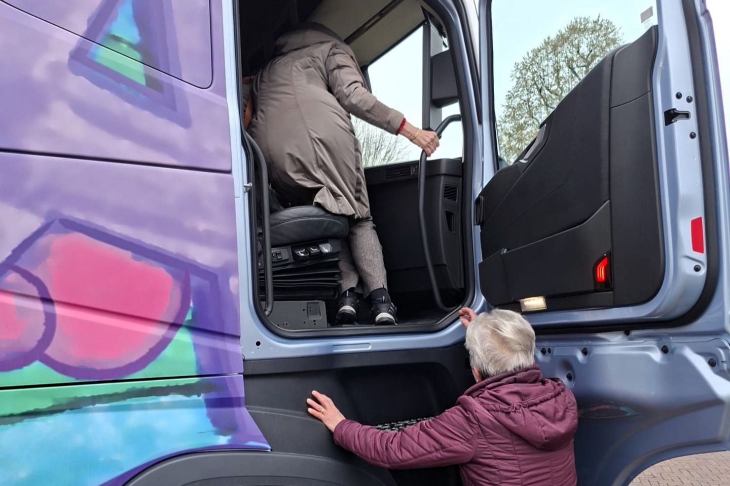 Na een duidelijke uitleg over de gevaren van dode hoeken volgde een praktijkgedeelte op het kerkplein in Neerkant. Onder begeleiding van TLN‑instructeur Corina Hamer namen de deelnemers zelf plaats achter het stuur van de Volvo‑truck om te ervaren wat een chauffeur wel en niet kan zien.