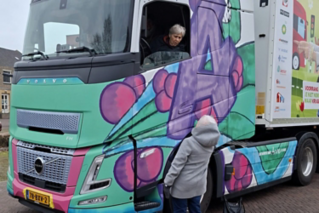 Veilig op Weg rijdt het eerste kwartaal van 2026 met een bijzondere, herkenbare verschijning door Nederland: de ‘Anne‑truck’ - een Volvo FH Aero met XXL‑cabine die in de zomer van 2025 werd gewrapt naar het ontwerp van de toen 11‑jarige Anne. Zij won destijds de landelijke ontwerpwedstrijd van Volvo Trucks Nederland, waarna haar tekening een echte Volvo‑truck sierde — inmiddels een geliefde verschijning bij verkeerseducatie op basisscholen.
