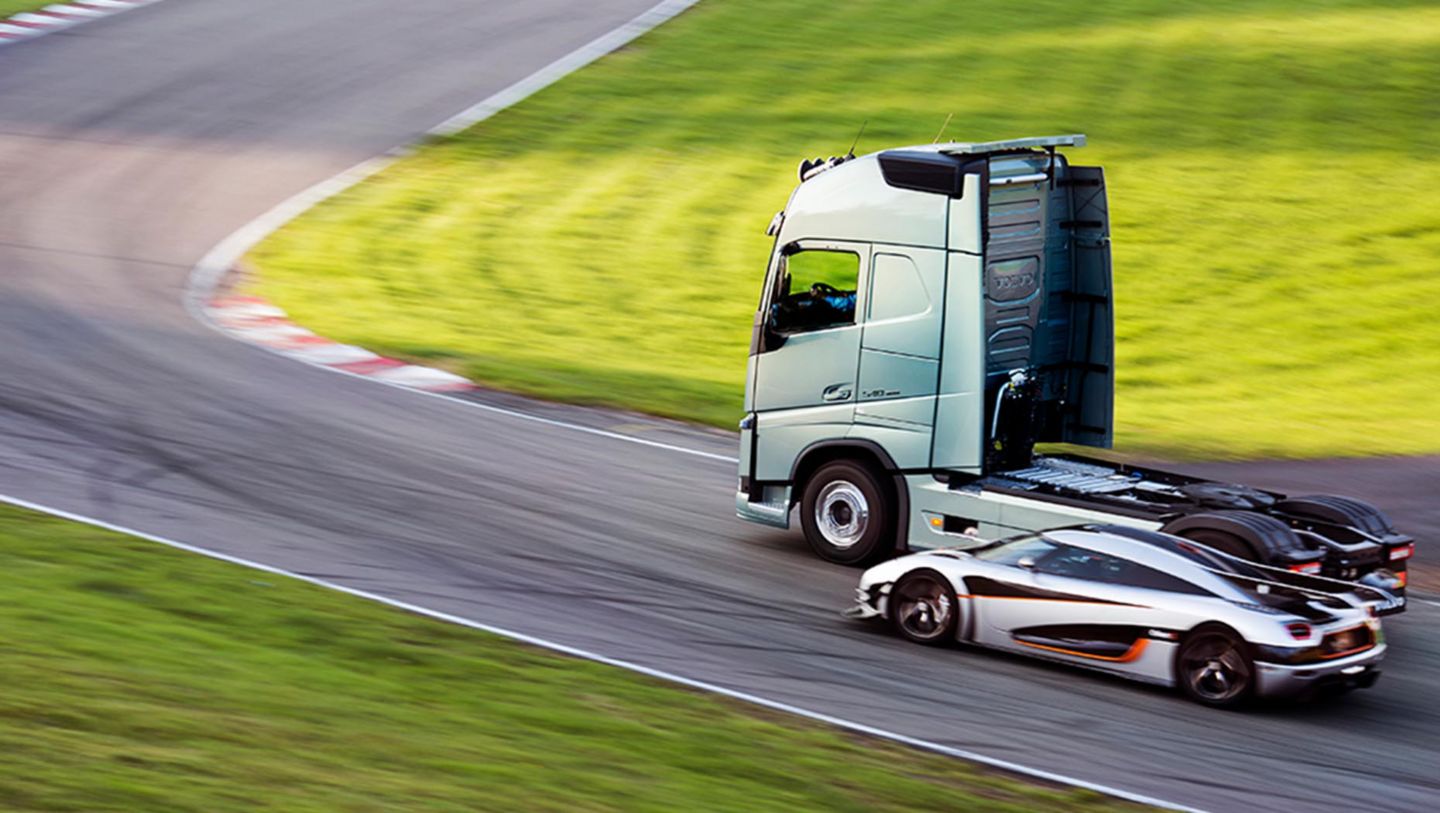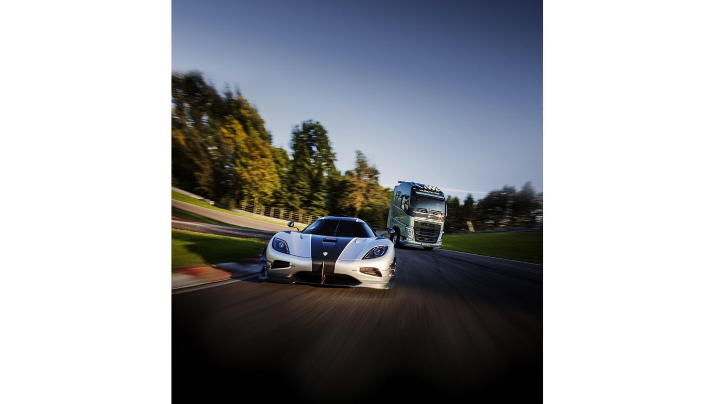 De unieke Volvo Trucks I-Shift Dual Clutch-versnellingsbak wordt getest in de nieuwe film ‘Volvo Trucks vs Koenigsegg’. In de film neemt een Volvo FH het op tegen een Koenigsegg One:1, die met evenveel paardenkrachten als kilo´s (1.360) de eerste ‘mega car’ ter wereld is. Om de kansen eerlijker te verdelen, heeft de Volvo FH een kleinere handicap gekregen. De truck rijdt slechts één ronde tegen twee voor de Koenigsegg. Desondanks blijft de uitkomst onvoorspelbaar. De race is bedoeld als de ultieme test voor de nieuwe Volvo I-Shift Dual Clutch.