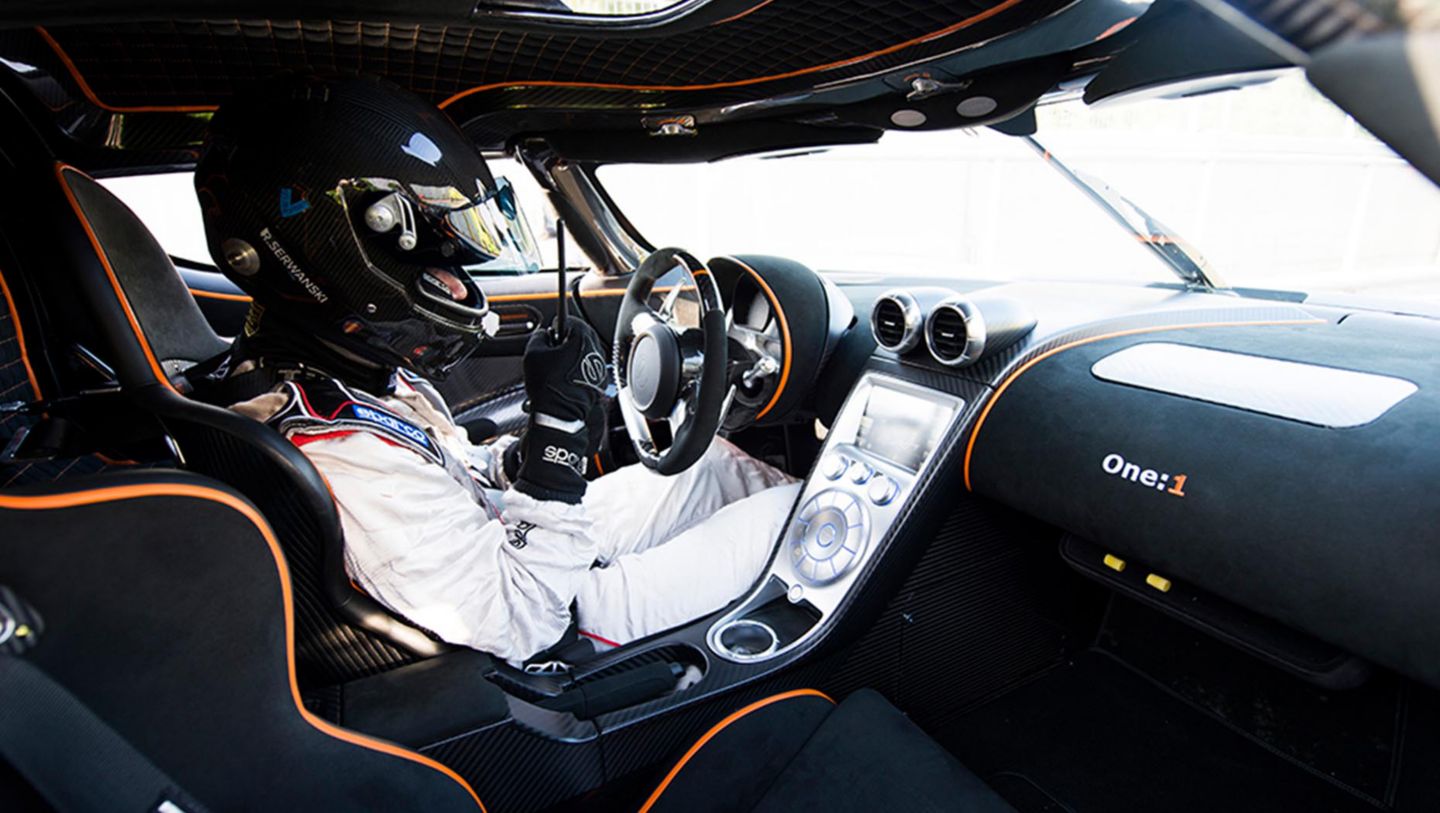 Koenigsegg One:1 is ´s werelds eerste in serie geproduceerde mega car’: de eerste auto ter wereld met één paardenkracht per kilo. Dit komt neer op 1.360 paardenkrachten en 1.360 kg, een combinatie waarin geen enkele autofabrikant eerder was geslaagd. De motor levert een koppel van meer dan 1.000 Nm tussen 3.000 en 7.500 tpm en kan binnen 20 seconden versnellen van 0–400 km/u.