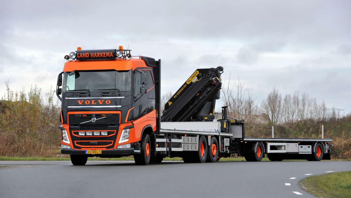 De vloot van Land Transport Harkema telt inmiddels veertig trekkende eenheden waarvan het merendeel van Volvo. Land Transport is actief in verschillende disciplines waaronder geconditioneerd transport, semi-dieplader transport, het vervoer in schuifzeilopleggers met of zonder kooiaap en het vervoer van bouwgerelateerde goederen met auto’s met autolaadkraan. De jongste investering in twee nieuwe combinaties past binnen die laatste categorie. Land Transport rijdt met name kozijnen en prefab- bouwelementen, maar ook containerunits, steigermateriaal en betonwaren zoals putten. Daarvoor zijn multifunctionele combinaties nodig en daarvoor is samengewerkt met Volvo Trucks-dealer Nijwa en Rondaan Carrosserie.