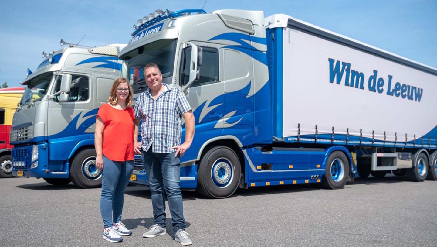 Wim is in 2011 voor zichzelf begonnen, maar werkt al langer als vrachtwagenchauffeur. Wendy keek altijd vanaf de zijlijn mee. “Hij rijdt al zó lang! Vanaf mijn tweede ga ik al mee. Ik ben er echt mee opgegroeid.” Wendy wist al vanaf jonge leeftijd dat zij in haar vaders voetsporen wilde treden. Twee jaar geleden koos ze definitief voor het vak, maar van Wim moest ze eerst de juiste opleiding volgen. In januari van dit jaar zijn ze samen in een VOF gestapt. Wim: “We zijn eigenlijk een compleet nieuw bedrijf begonnen. Er kwam van alles op ons af: nieuwe vergunningen, de Kamer van Koophandel en natuurlijk de nieuwe vrachtwagen.” Wendy vult aan: “Eigen baas op je 22ste, dat is niet niks in deze branche!” Echt spannend vindt ze dat niet. “Wel heel gaaf! En ik heb altijd mijn vader nog achter de hand.” Sinds september heeft ze al ervaring opgedaan en klanten ontmoet. Met elkaar werken gaat soepel. “Het moeilijkste is om werk en privé gescheiden te houden”, vindt Wim. “Zeker omdat Wendy ook nog thuis woont. Maar we gaan daar heel goed mee om. We durven alles tegen elkaar te zeggen.”